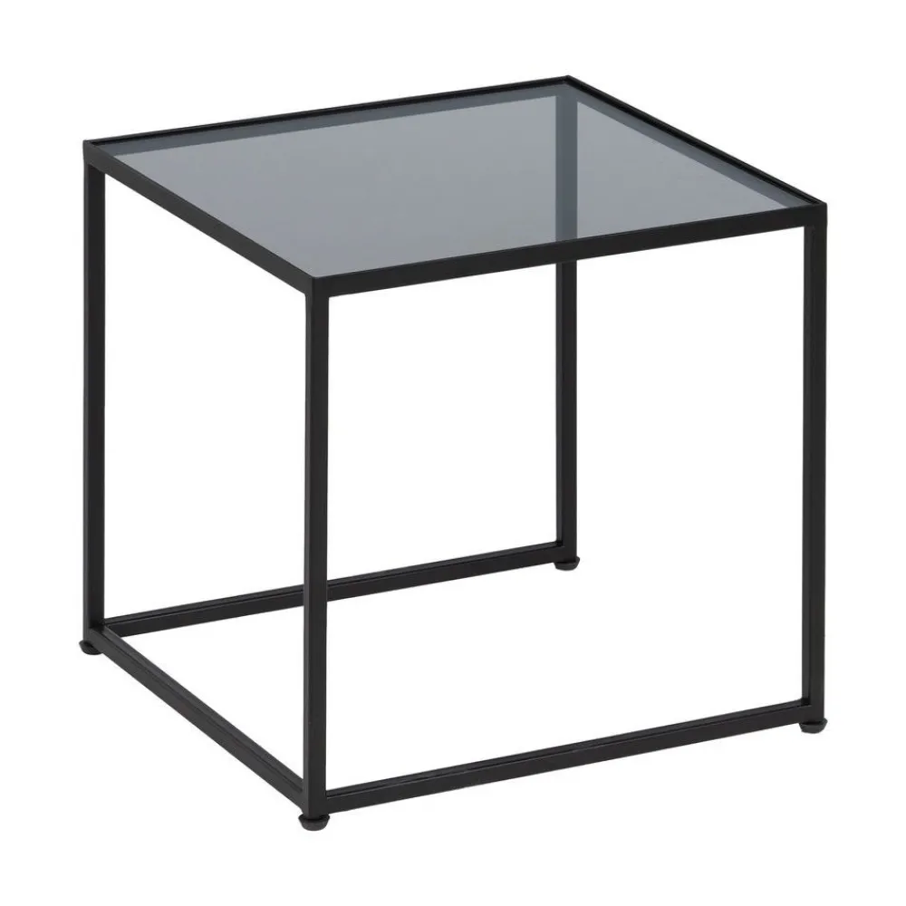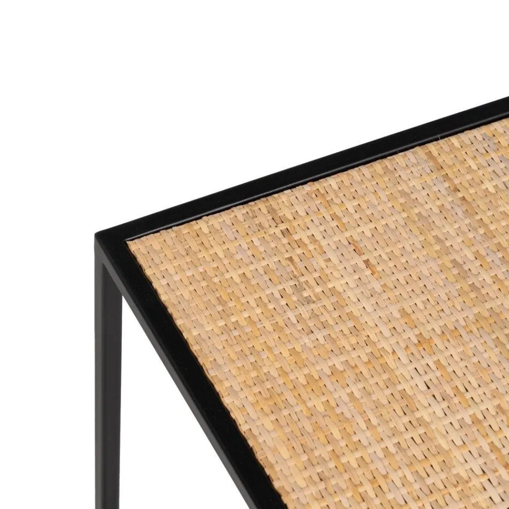 IXIA Mesas Auxiliares^Set De 3 Mesas De Centro De Ratán Y Cristal En Color Natural – Negro – Cristal 97,5 – 40 X 34,5 – 39 X 34 – 38 Cm