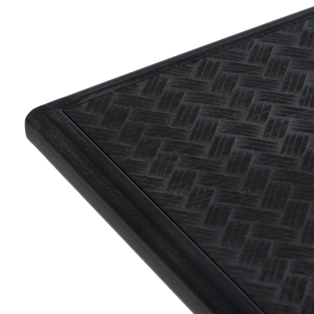 Fabricada en , esta consola destaca por su resistencia y estética. La madera de xylosma aporta vetas cálidas y textura natural, mientras que el metal negro refuerza la estructura con un aire industrial. Las patas inclinadas con travesaños metálicos garantizan estabilidad y diseño.
