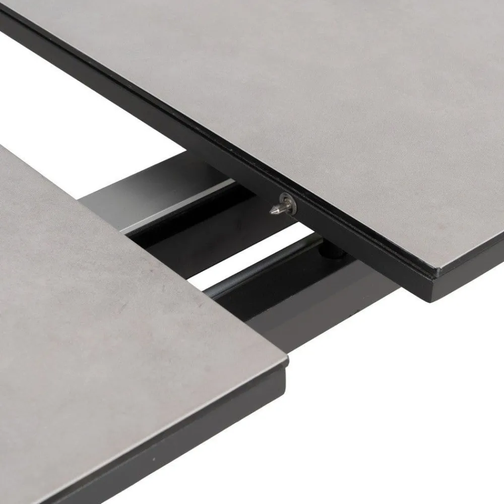 La mesa de comedor extensible cerámica combina un diseño contemporáneo con la funcionalidad de una encimera extensible. Su superficie de cristal con cerámica ofrece resistencia y elegancia, mientras que las patas de aluminio negro aportan estabilidad y carácter. Ideal para 6 a 10 comensales, perfecta para reuniones y eventos.