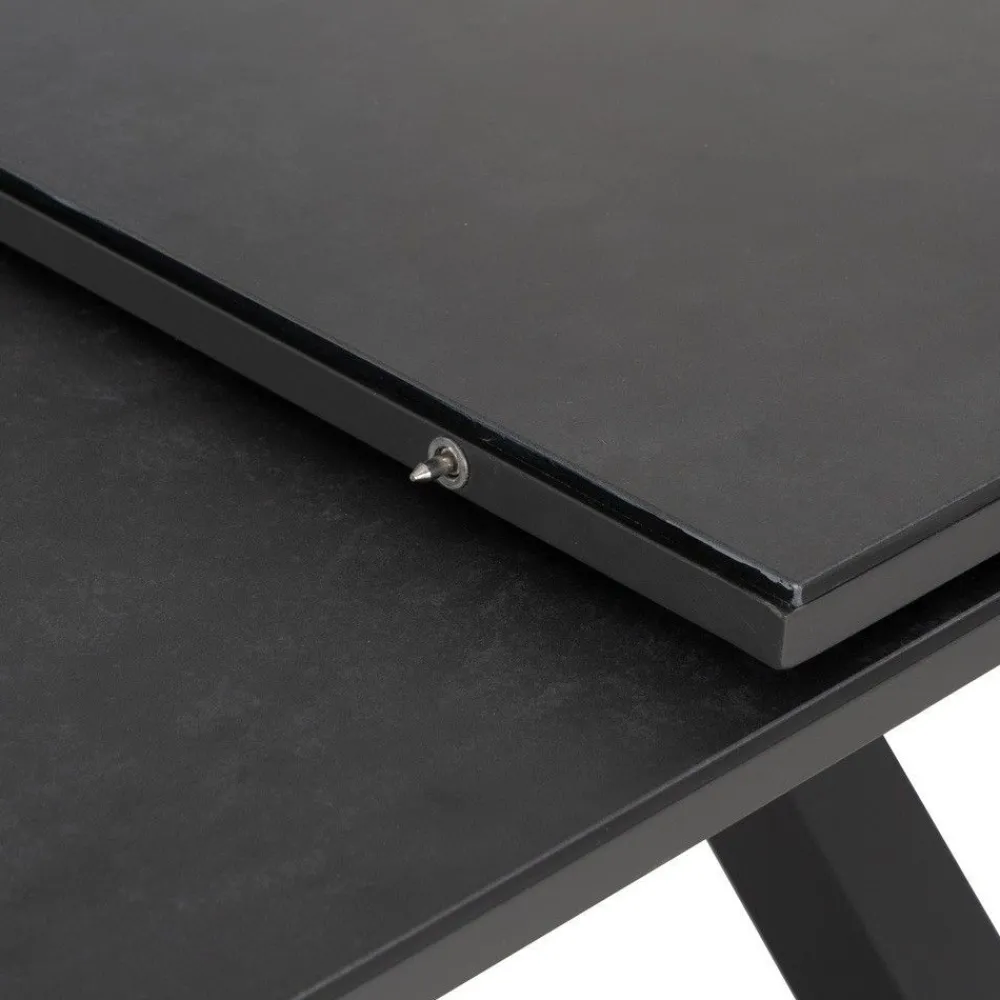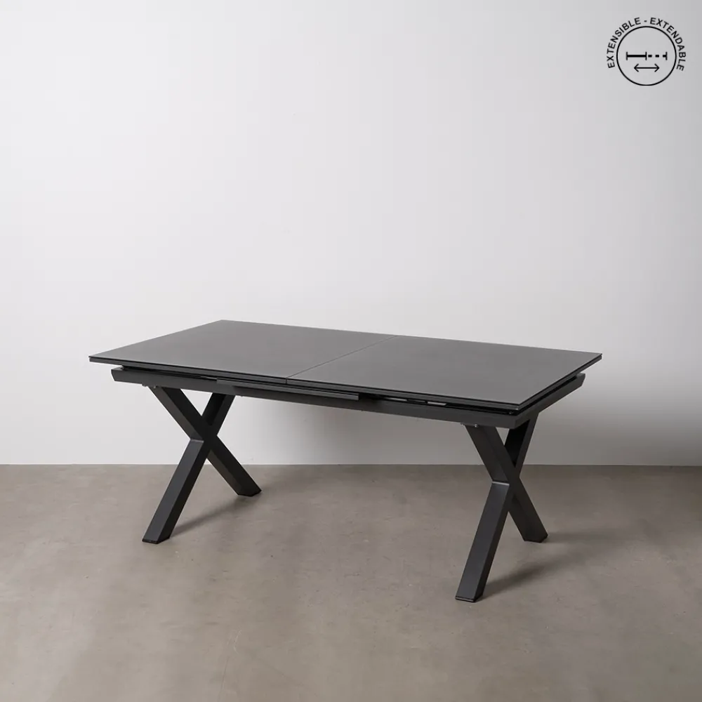 La mesa de comedor extensible antracita combina elegancia y funcionalidad gracias a su encimera de cristal recubierto de cerámica y su sistema extensible. Ideal para 6 a 10 comensales, se adapta a cualquier espacio y ocasión con un diseño contemporáneo y sofisticado.