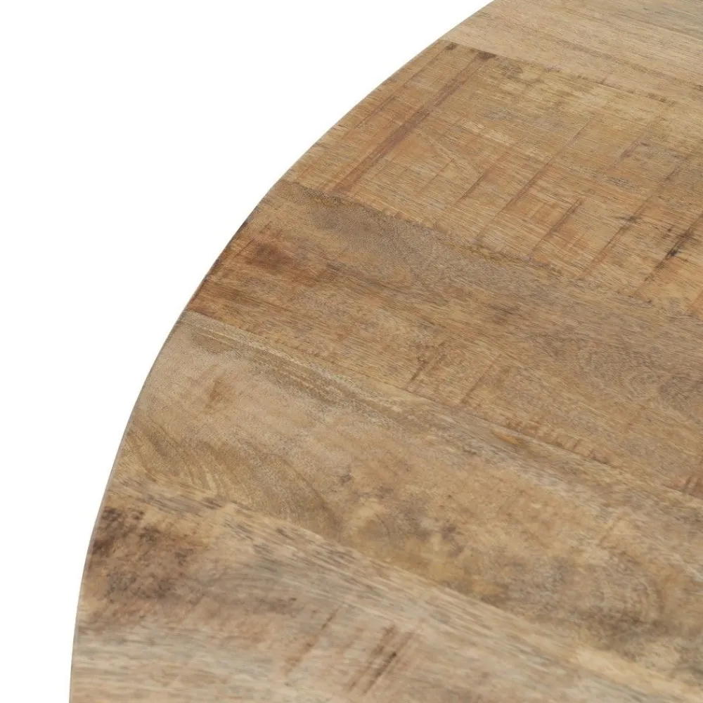La mesa de comedor natural y negro combina la calidez de la madera maciza de mango con la solidez de las patas de hierro. Su diseño redondo y robusto es ideal para comedores de estilo industrial y moderno.