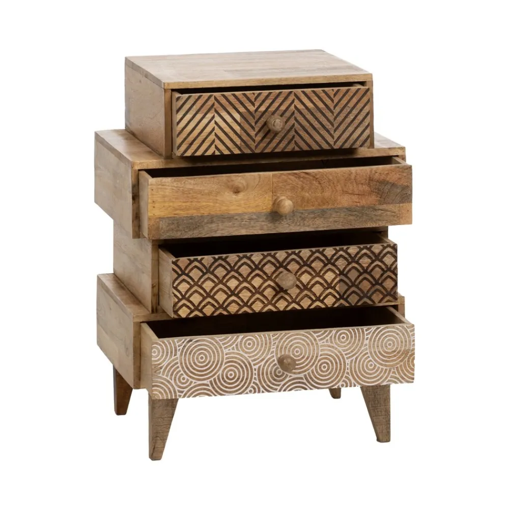 IXIA Mesillas De Noche^Mesilla De Madera De Mango 4 Cajones Natura 46 X 60 X 30 Cm