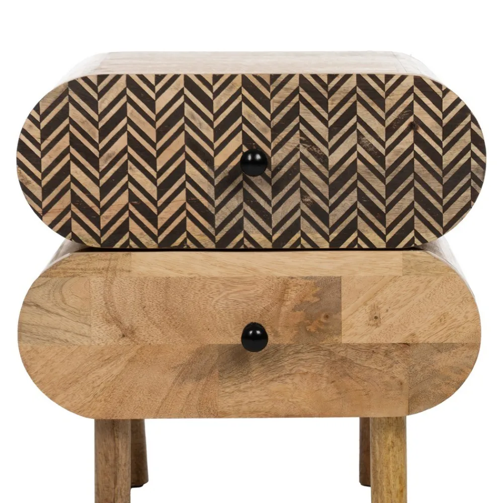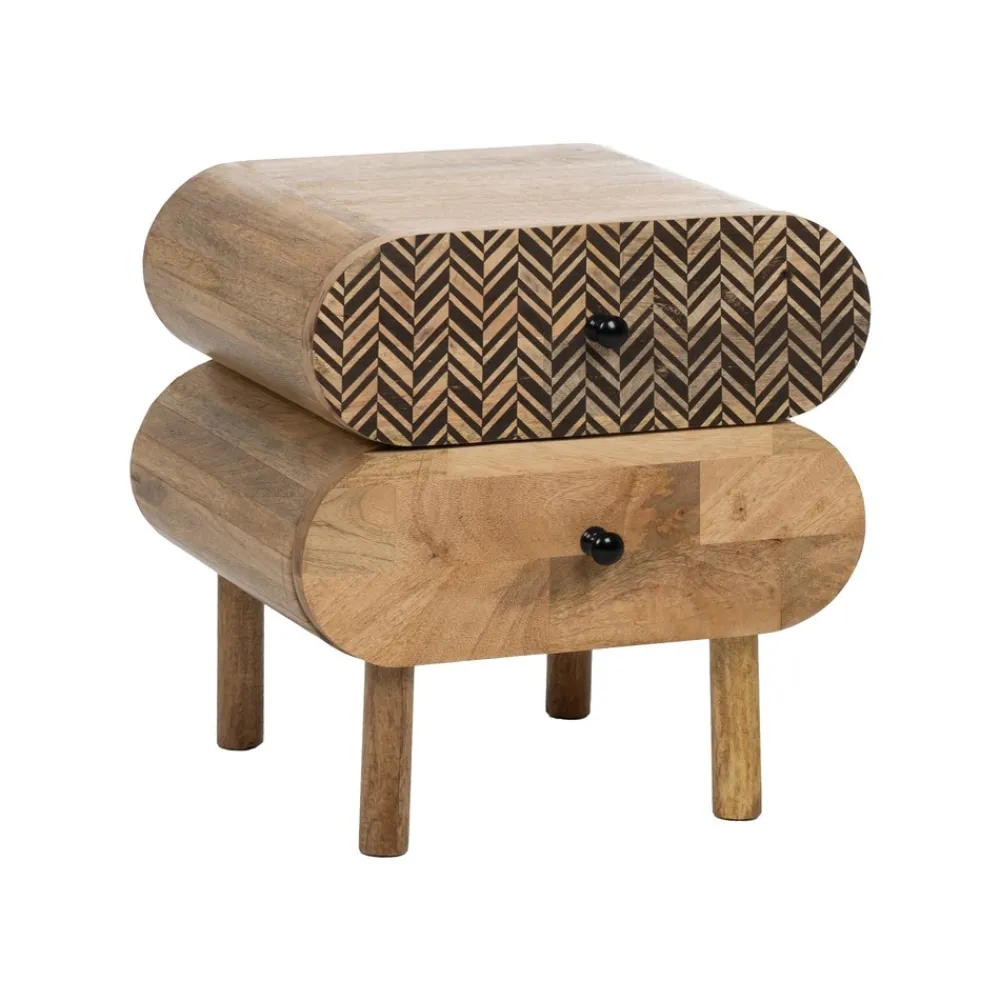 IXIA Mesillas De Noche^Mesilla De Noche Ovalada 2 Cajones Geometrica Natural 41 X 43 X 33 Cm