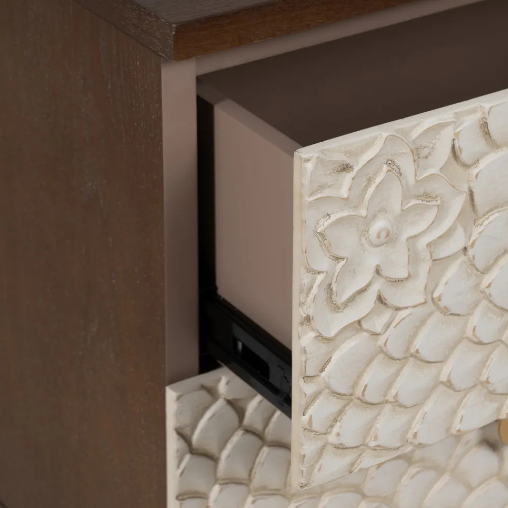 IXIA Mesillas De Noche^Mesita De Noche 2 Cajones Manacor De Madera Tallada 48 X 60 X 36 Cm