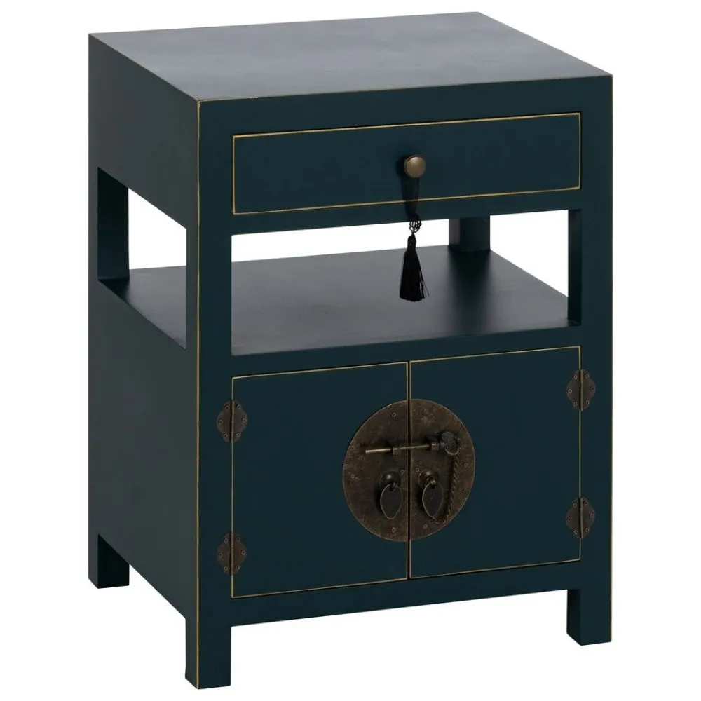 IXIA Mesillas De Noche^Mesita De Noche Azul Madera '' Oriente'' 50 X 40 X 66 Cm