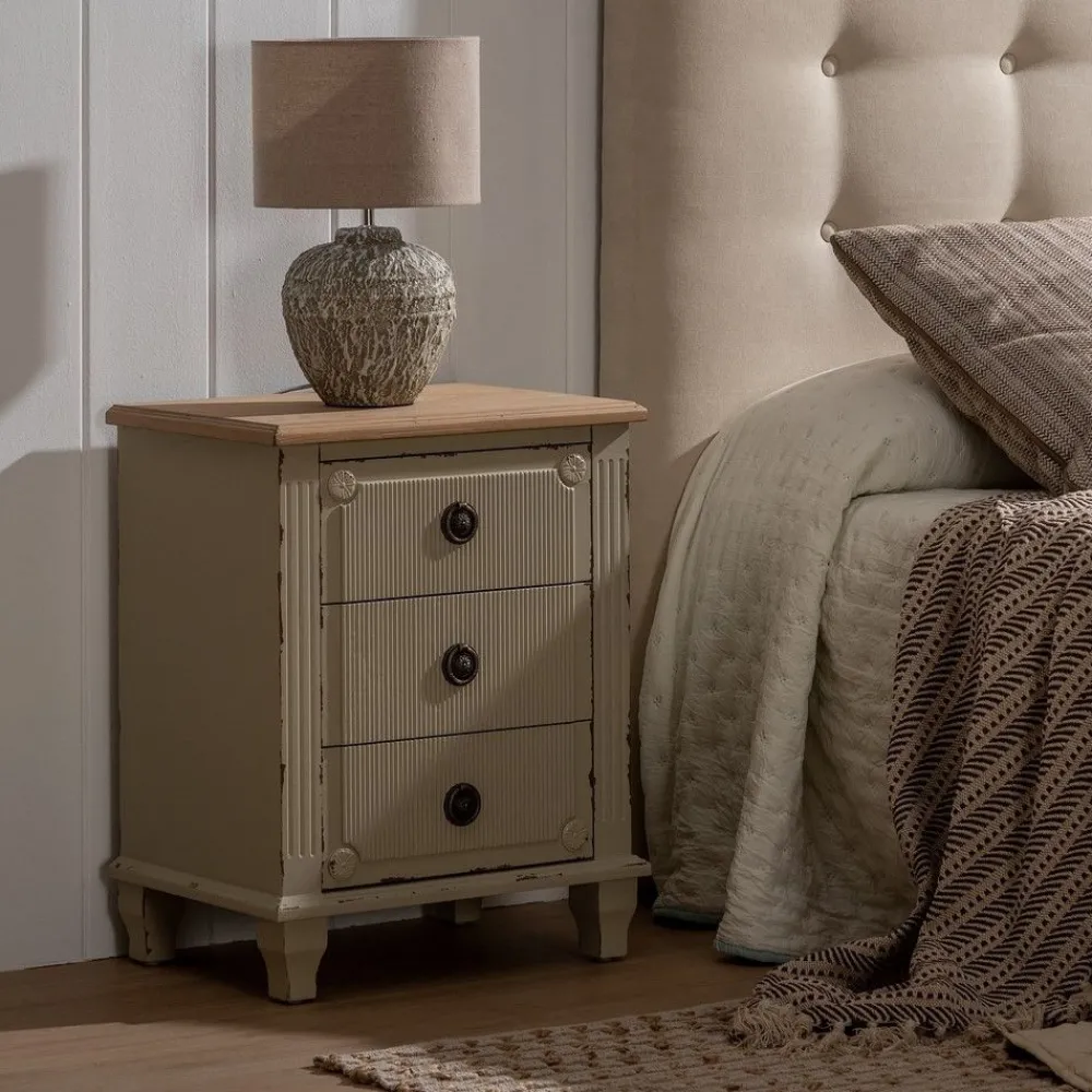 IXIA Mesillas De Noche^Mesita De Noche Crema Madera 48 X 36 X 61 Cm