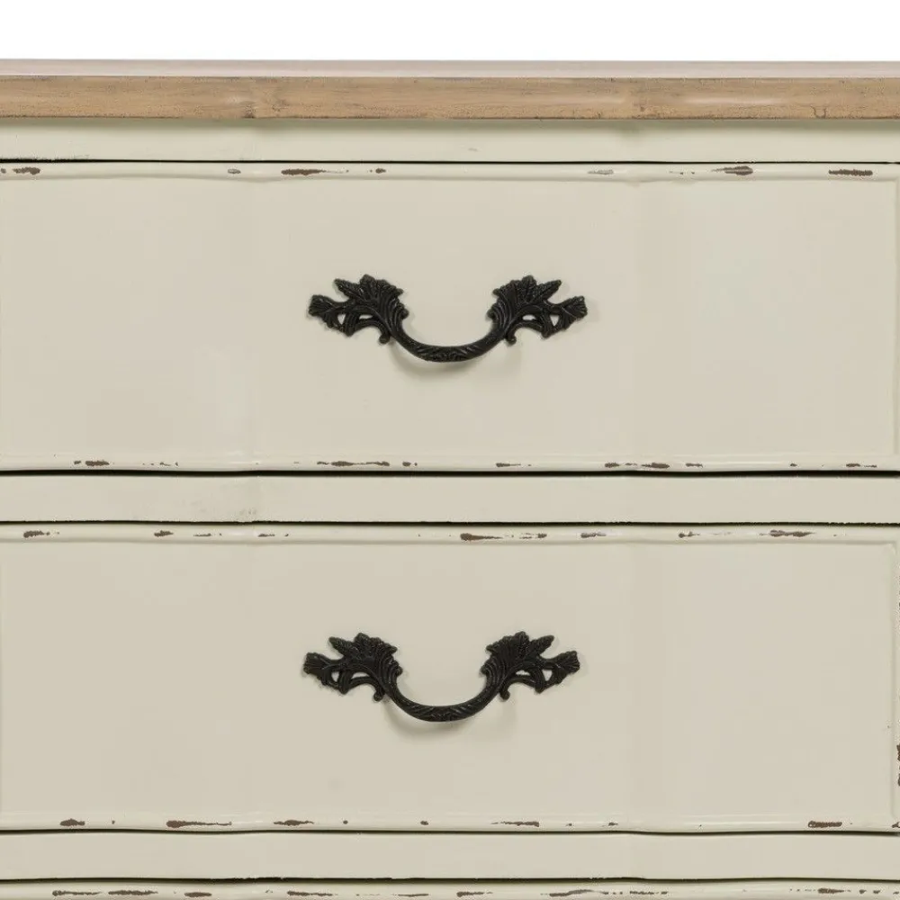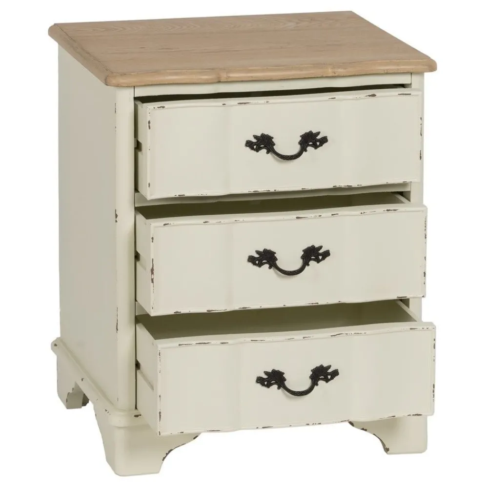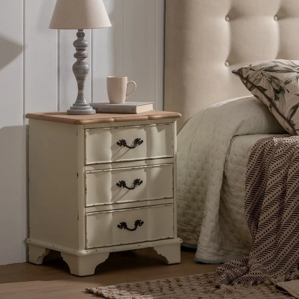 IXIA Mesillas De Noche^Mesita De Noche En Madera Estilo Vintage 3 Cajones Natural – Crema Rozado 50 X 60 X 40 Cm