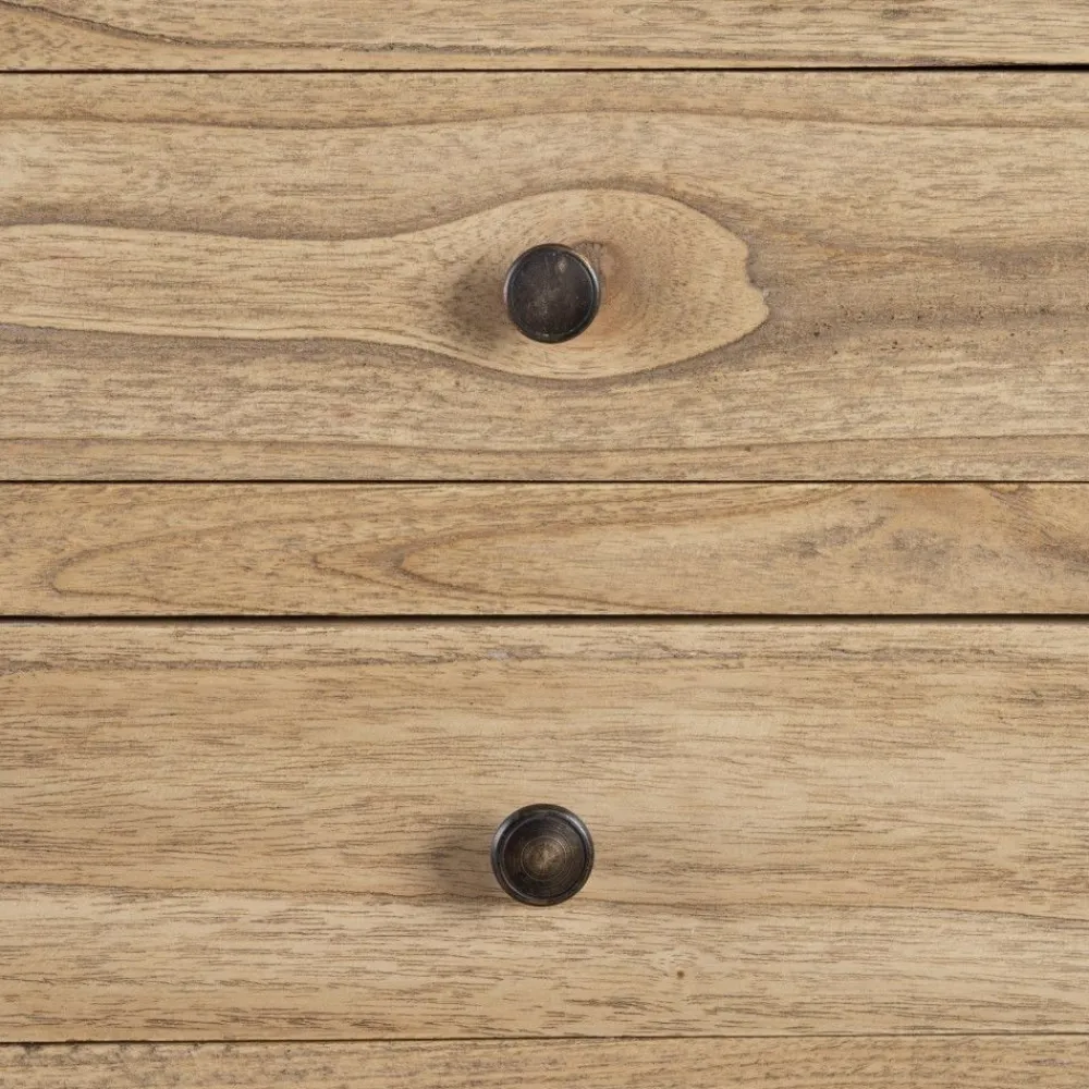 MESITA NATURAL Madera de Mindi DORMITORIO 44 X 34 X 77 cm Material: Madera de mindi. Medida cajones: 35,3×9 cm. Altura patas: 11 cm.