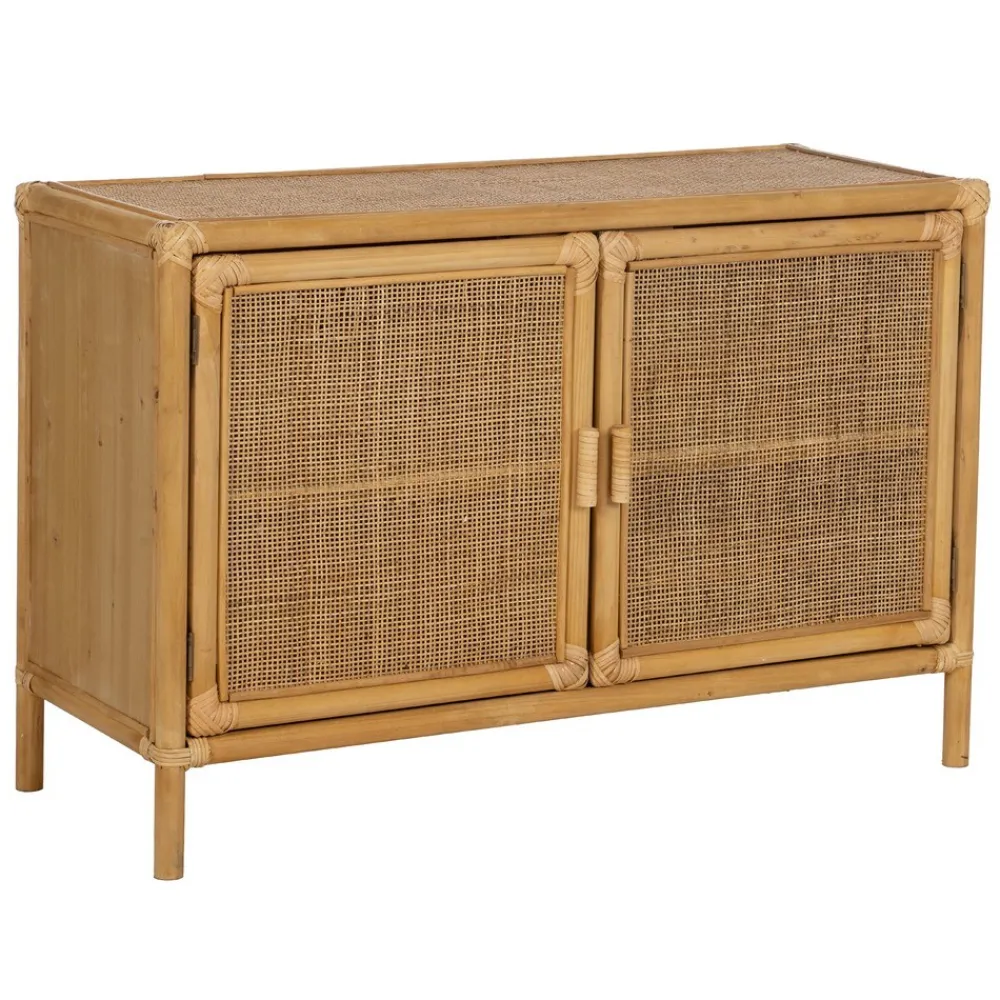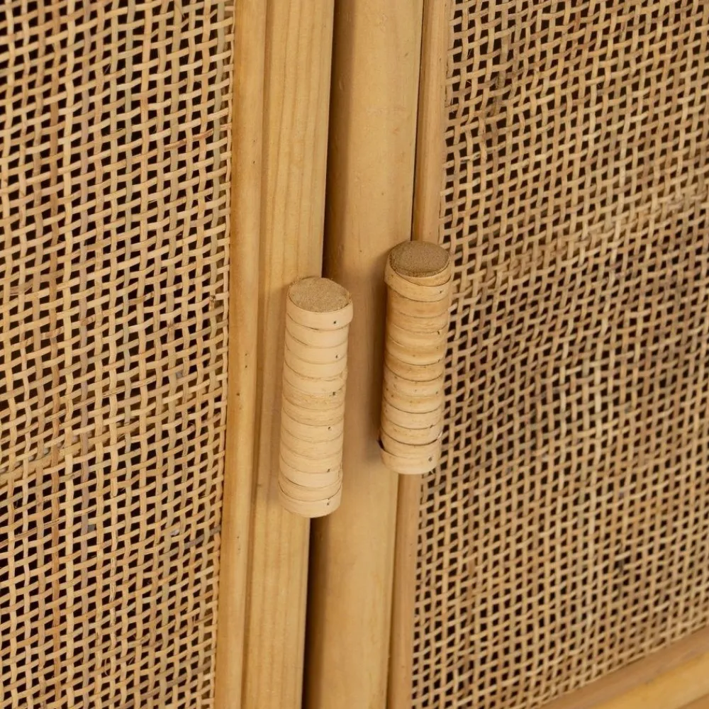 Mueble auxiliar de ratán natural con dos puertas – Elegancia y funcionalidad para tu hogar