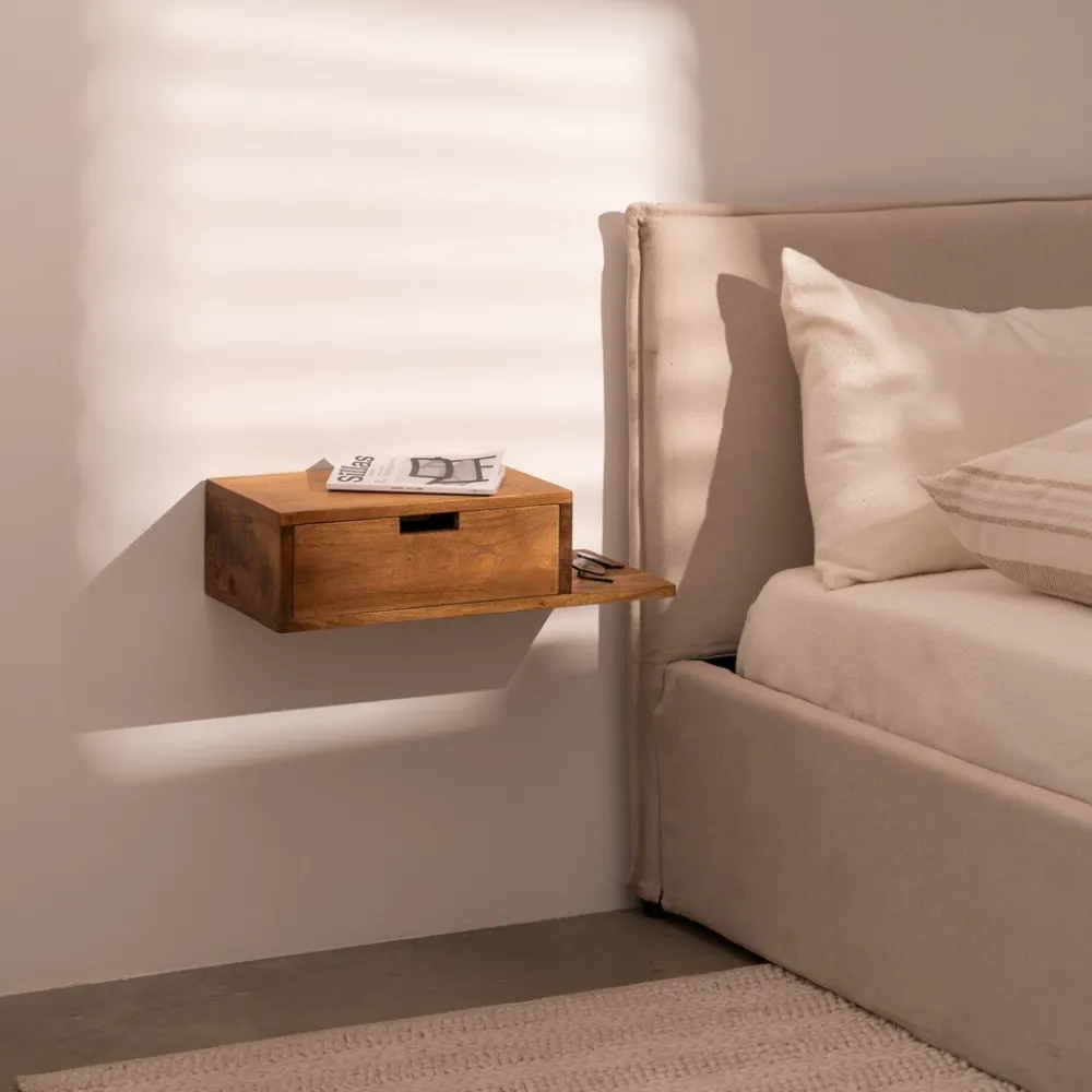 IXIA Mesillas De Noche^Set 2 Mesillas Noche Flotantes Madera 1 Cajon Miel 55 X 15 X 25 Cm