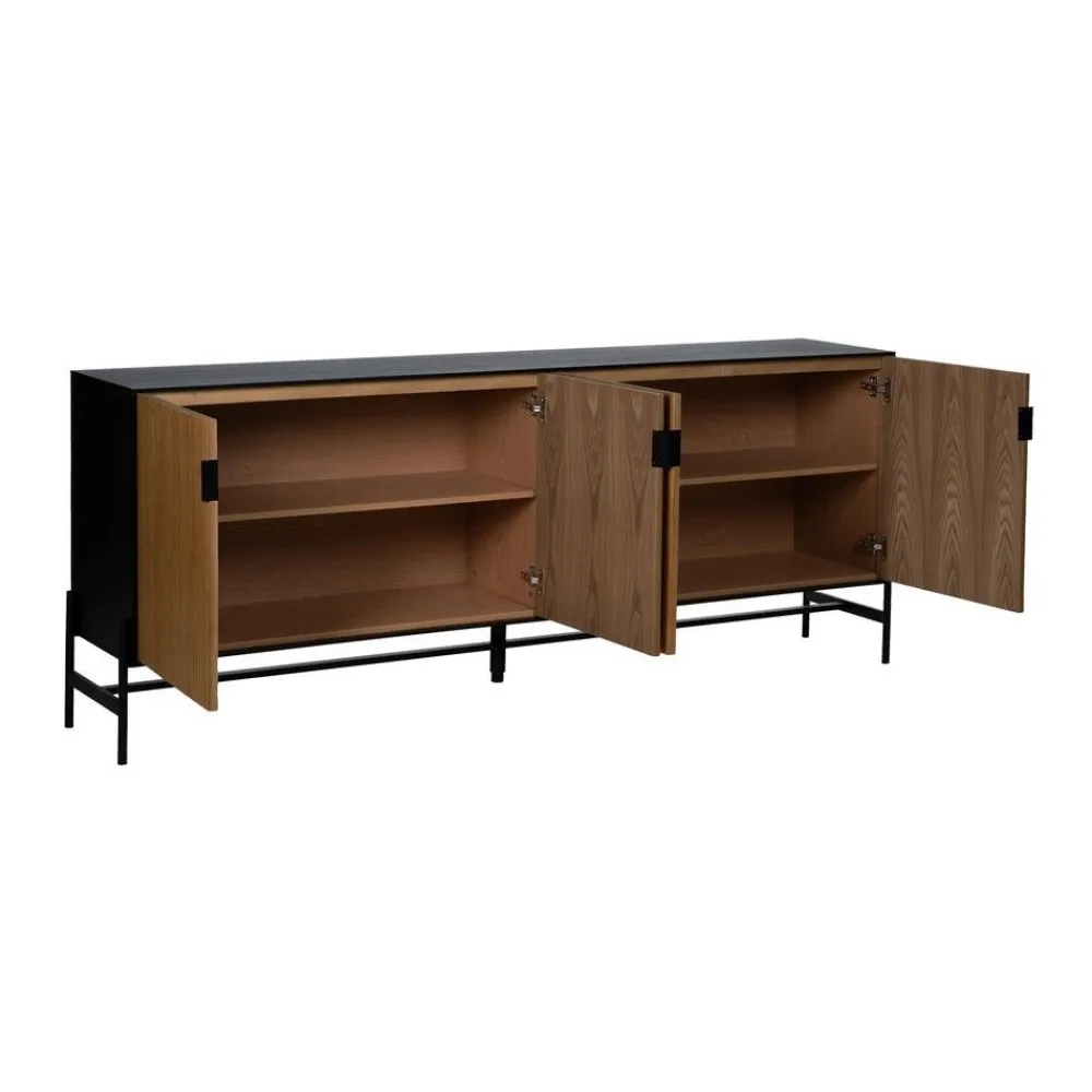IXIA Muebles De Salón^Aparador Orleans 4 Puertas Negro – Natural 204 X 81,5 X 40 Cm