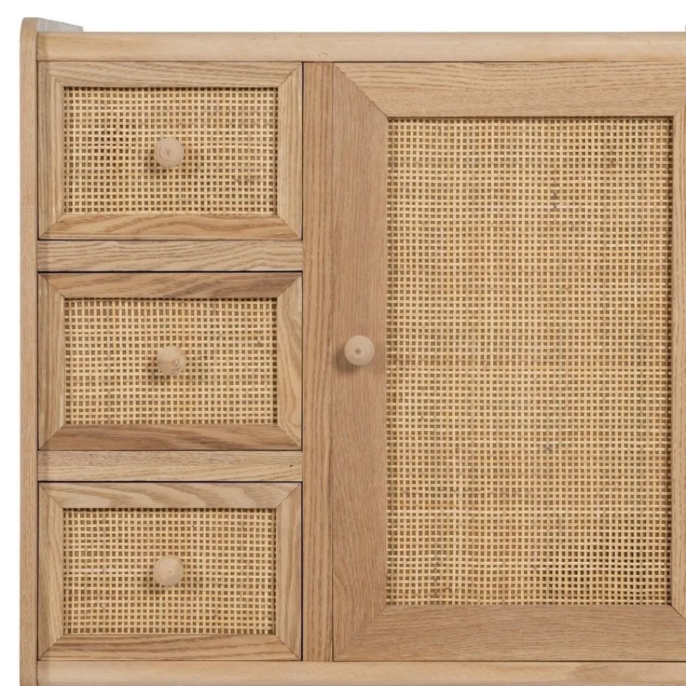 El es la combinación perfecta de funcionalidad y estilo para cualquier hogar. Con un diseño encantador, este mueble está fabricado en , DM y ratán, materiales que aportan un aire natural y acogedor a cualquier espacio. Su acabado en color natural resalta la belleza de la madera y los detalles en ratán, convirtiéndolo en una pieza versátil y decorativa.