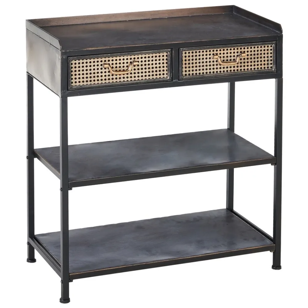 Mueble recibidor Brick en hierro negro y marrón