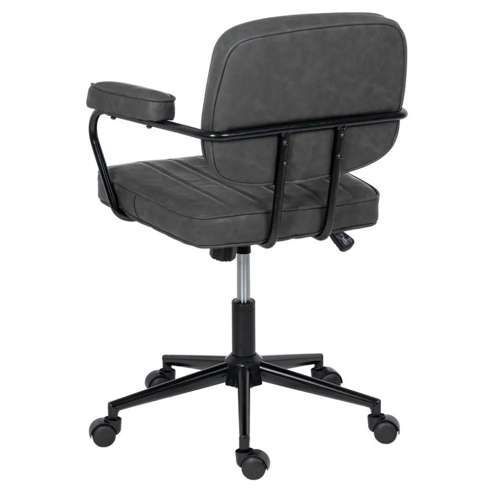 IXIA Sillas De Estudio^Silla Estudio Vintage Con Ruedas Símil Piel Rayada Negra 56 X 56 X 92 Cm