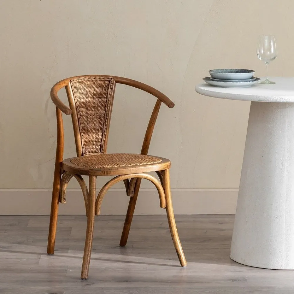 - Asiento: Ratán acolchado.