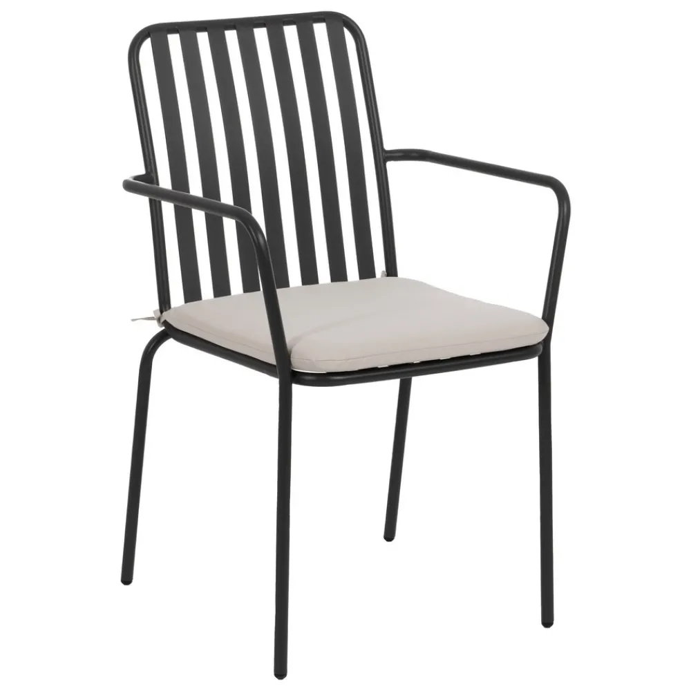 IXIA Sillas De Jardín^Sillá Metálica Apilable Para Jardín Con Brazos Antracita 56 X 87 X 57 Cm