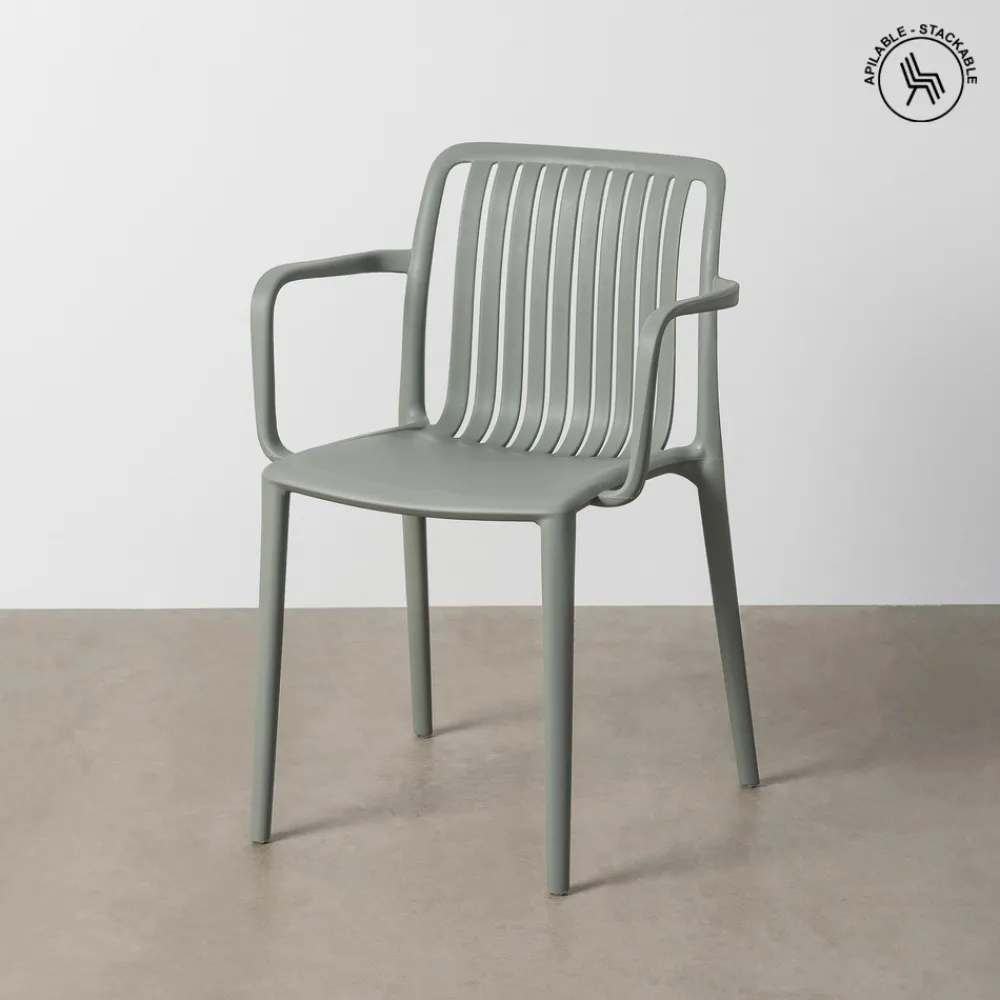 IXIA Sillas De Jardín|Sillas De Polipropileno^Silla Apilable Con Brazos Exterior Polipropileno Verde 53 X 77,5 X 50 Cm