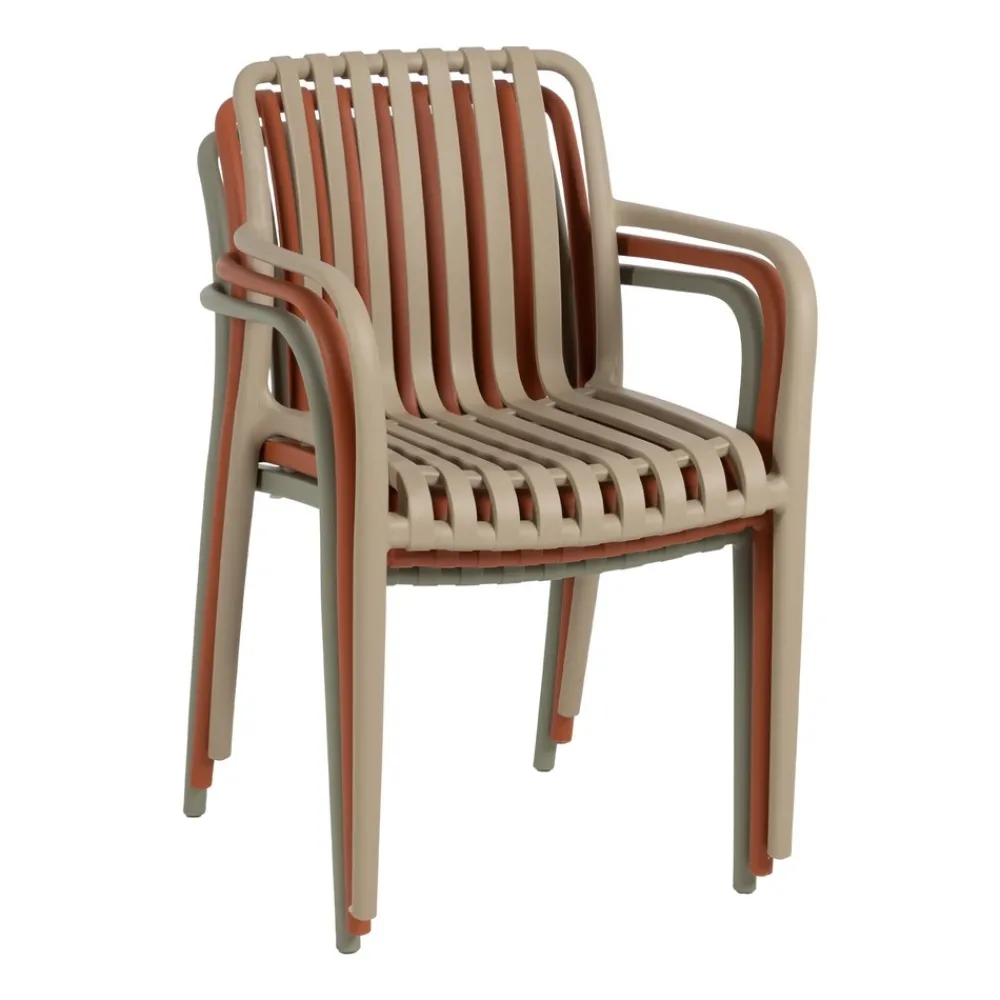 IXIA Sillas De Jardín|Sillas De Polipropileno^Silla De Jardin O Terraza Apilable Con Brazos Polipropileno Beige 56 X 81 X 57 Cm