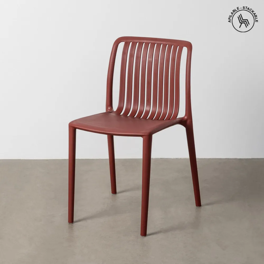 Material: polipropileno. Altura asiento: 45cm. Ancho asiento: 41cm. Profundidad asiento: 40cm. Altura respaldo: 37cm. Cumple la normativa EN12520 (uso doméstico). Apilable.