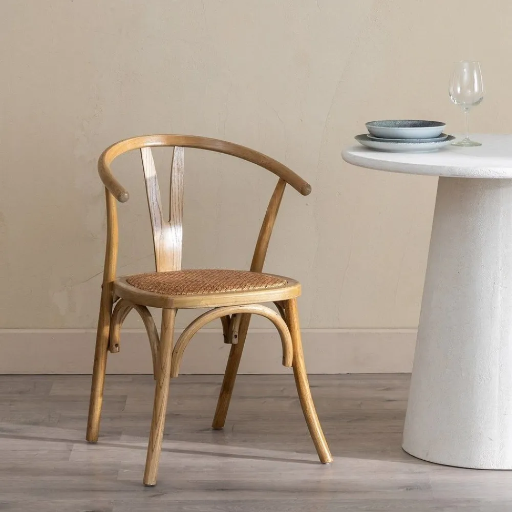 IXIA Sillas De Ratán Y Fibras|Sillas De Madera^Silla De Madera De Olmo Marrón Respaldo Curvo Asiento En Ratán 55 X 81 X 50 Cm