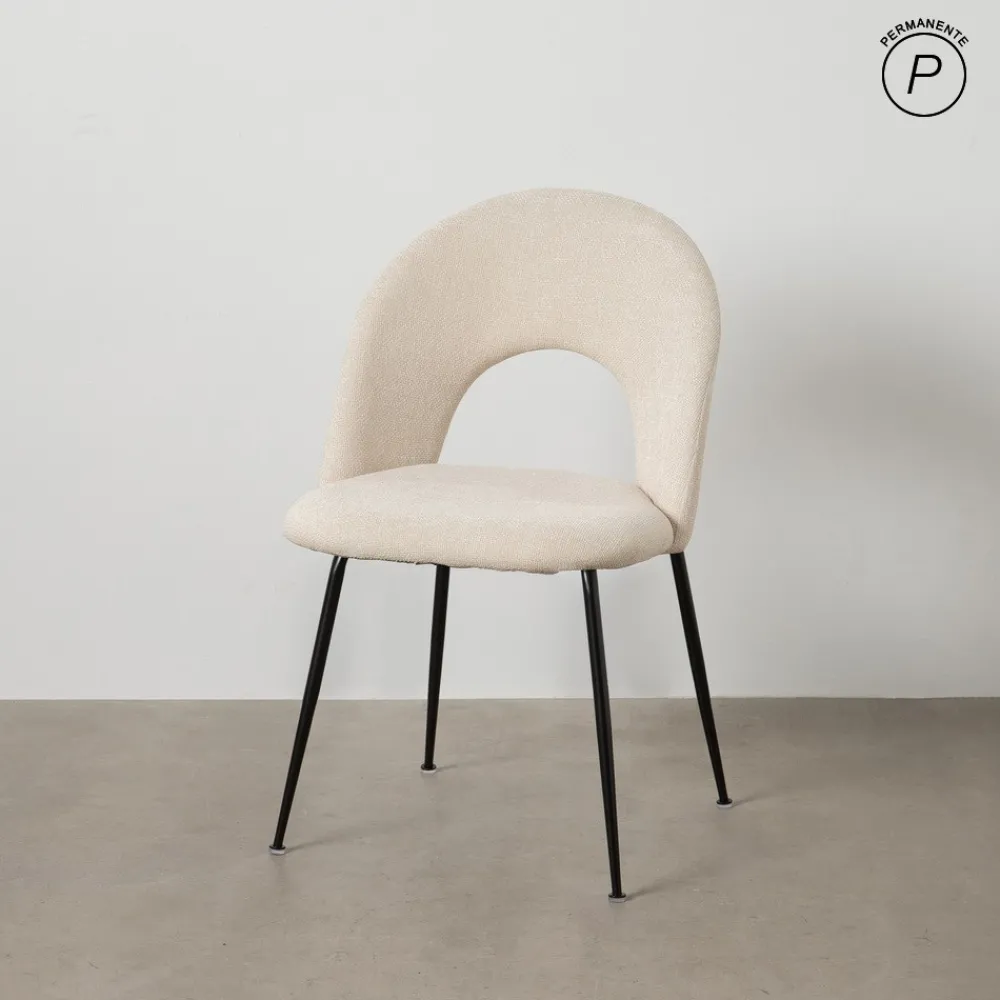 Material: Tejido -DM -Metal. Tapizado: Poliéster. Relleno: Foam. Densidad del relleno: 22 kg/m3. Material tablero del asiento: DM. Material de las patas: Hierro. Altura del asiento: 47 cm. Altura de las patas: 43 cm. Altura del respaldo: 37 cm. Medidas del asiento: 47 cm (ancho) x 45 cm (profundo). Distancia entre las patas: 48 cm. Peso máximo soportado: 120 kg. No apilable. No necesita montaje. Cumple normativa EN16139:2013 (Catering).