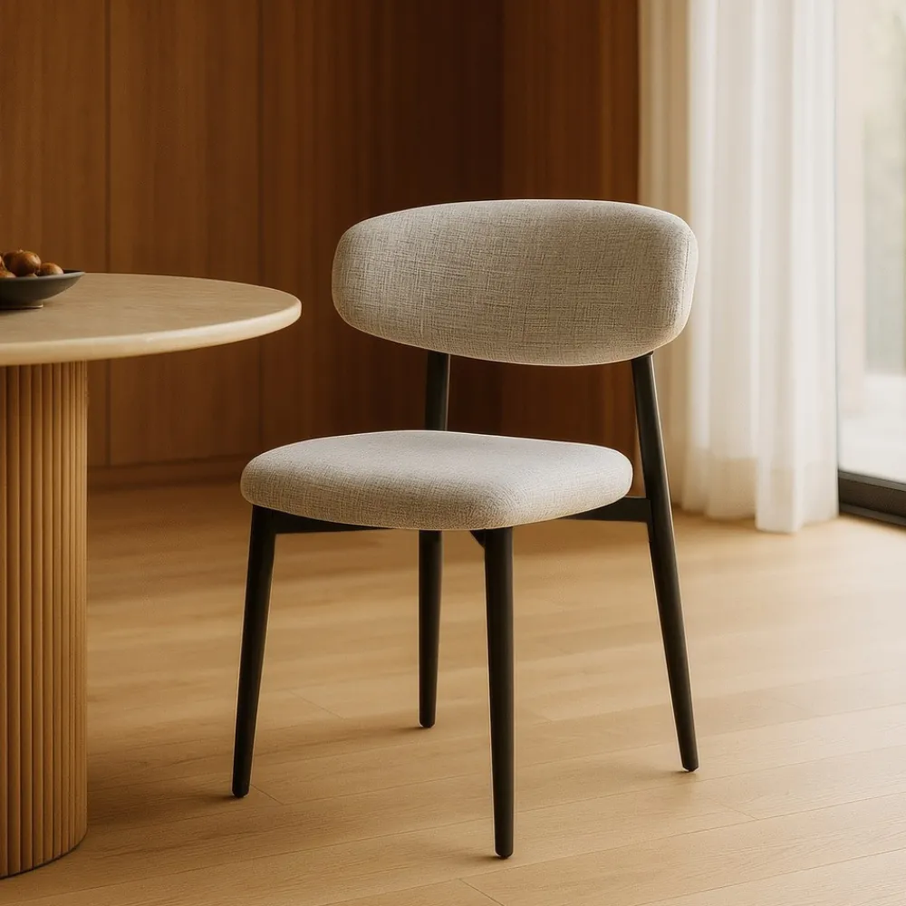 Material: Tejido – Metal (Acero). Tapizado: 100% Poliéster. Tejido repelente al agua. Color del tapizado: Gris. Color de las patas: Negro. Altura del asiento: 47 cm. Altura del respaldo: 35 cm. Anchura del asiento: 46 cm. Precisa montaje. No apilable. Cumple normativa: EN16139:2013