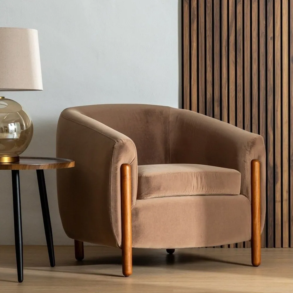 IXIA Sillones^Sillón Moderno Patas Madera Color Natural TapizadoTaupe 82 X 74 X 77 Cm