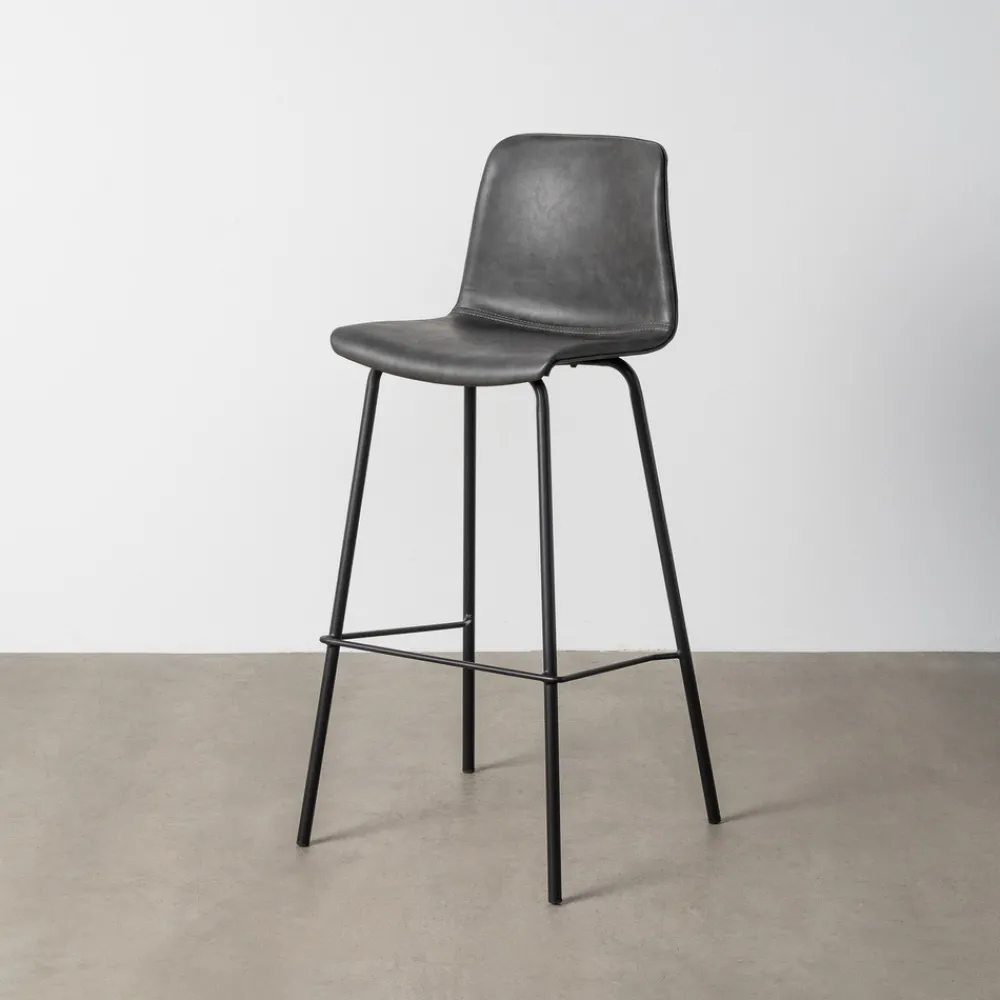 ESTRUCTURA DE POLIPROPILENO. PATAS DE METAL. TEJIDO DE PU. RELLENO:ESPUMA Altura asiento: 76cm. Ancho asiento: 38cm. Profundidad asiento:36 cm. Altura respaldo:30 cm. Distancia entre las patas:42,5cm. REQUIERE MONTAJE. CUMPLE CON LA NORMATIVA 16139:2013. Disponible en camel, marrón y negro. Sillas a juego en los mismos colores.