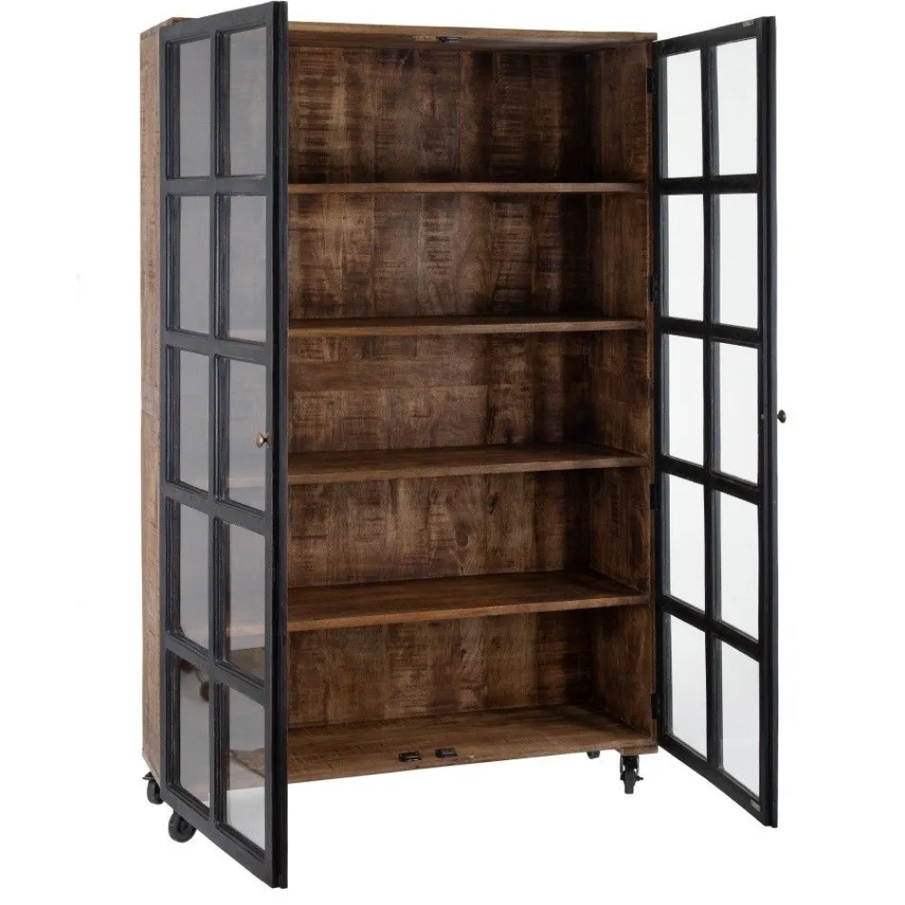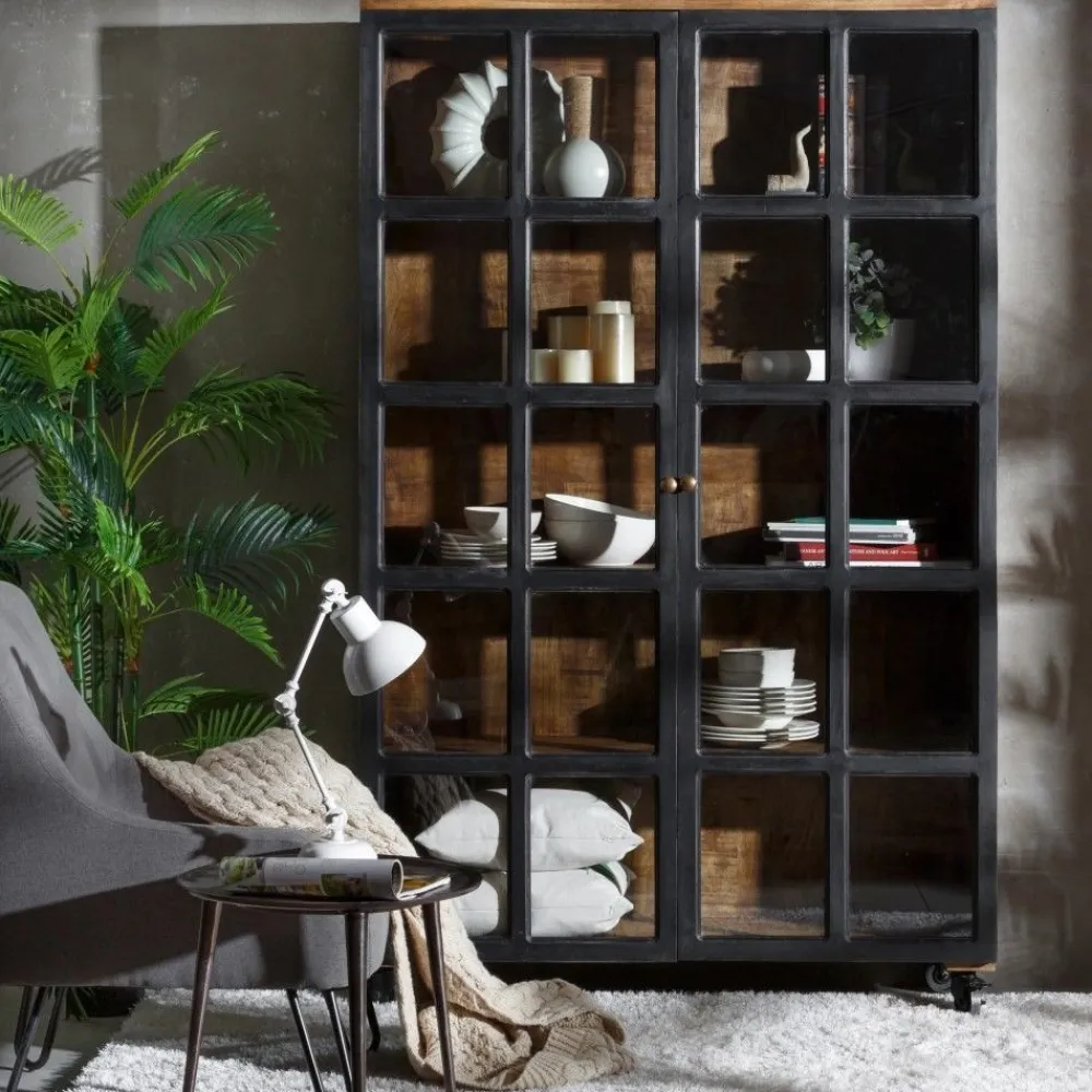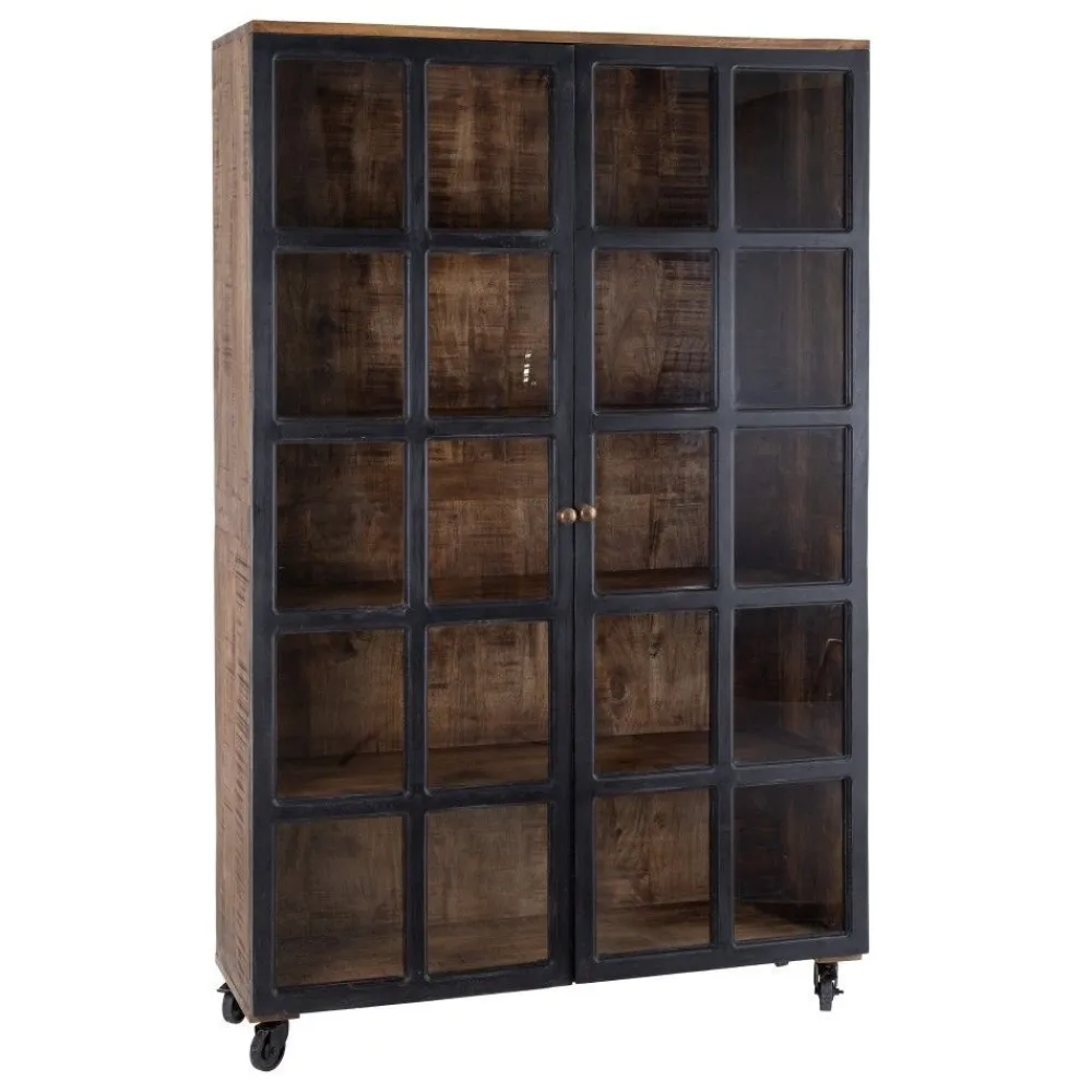 IXIA Vitrinas^Vitrina De Madera De Mango Negro – Natural Con Ruedas 120 X 194 X 40 Cm