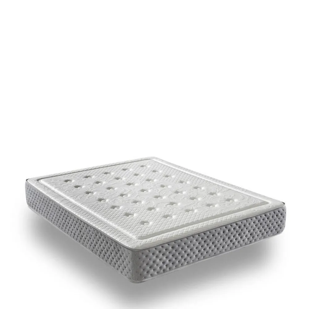 El colchón Adonis de 135 x 190 cm combina la tecnología de muelles ensacados Tecnosac con un refuerzo perimetral que ofrece soporte firme y duradero. Su doble cara con viscoelástica y tejidos transpirables garantizan el confort durante todo el año.