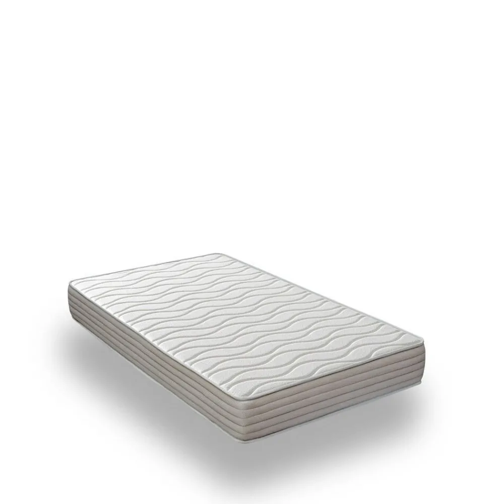 La cuidada selección de materiales incluye un que garantiza una firmeza óptima, mientras que la capa de se adapta de forma precisa a la anatomía del cuerpo, aliviando los puntos de presión y favoreciendo la correcta alineación de la columna. Su y la espuma supersuave aportan un extra de comodidad, haciendo de este producto un y agradable al tacto.