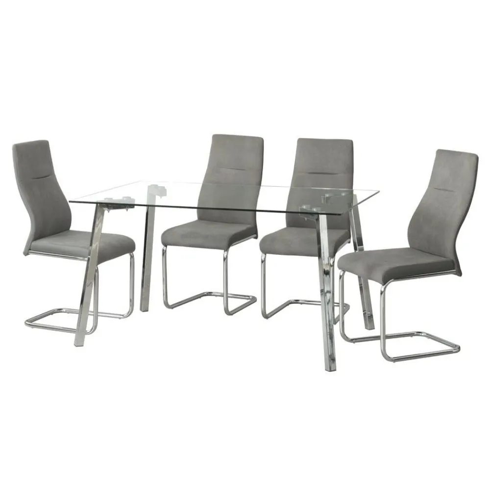 NAKURA Conjunto Mesa Y Sillas Comedor^Mesa Comedor De Cristal Jerez Con 4 Sillas Bilbao Tapizadas En Gris