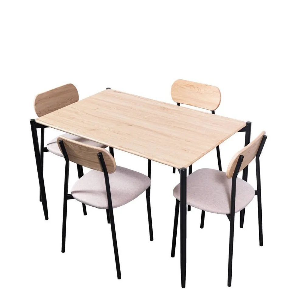 Los asientos, están tapizados con una suave tela color Beige, nos aportan una cómoda sentada a la hora de comer, conversar o incluso trabajar desde casa. Gracias a su diseño compacto, la mesa se integra fácilmente en comedores pequeños, cocinas abiertas o espacios multifuncionales, es ideal para ser usada por 4 personas. El diseño de las sillas nos permiten tener una postura cómoda y relajada para disfrutar cada momento al máximo.