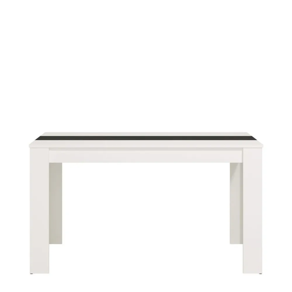 Esta mesa de para salón comedor destaca por su robustez y por su acabado en color Blanco, se trata de una mesa de salón fija con una franja central en color Negro muy decorativa.