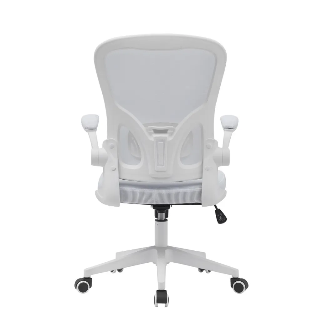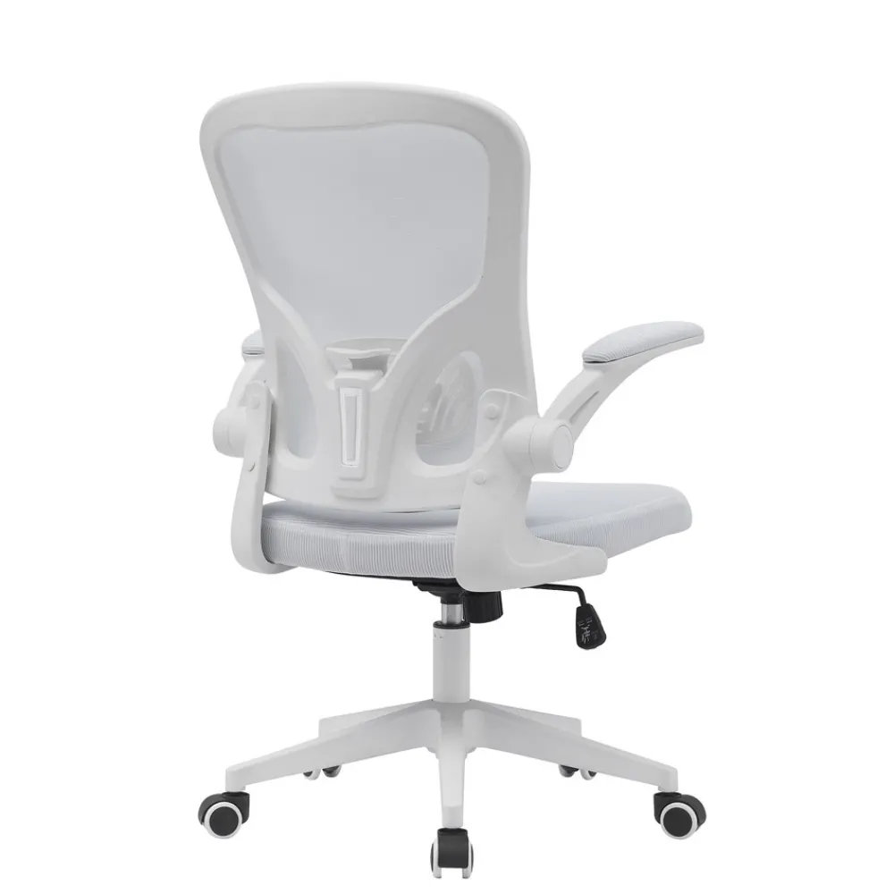 - Brazos abatibles tapizados en tejido 3D blanco