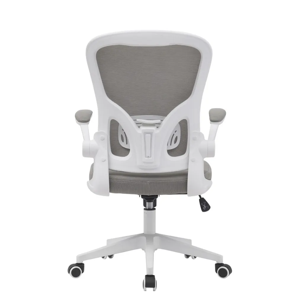Su diseño moderno y minimalista, combinado con materiales de calidad como el polipropileno blanco y el tejido 3D gris, la hacen perfecta tanto para oficinas profesionales como para estudios en casa. Además, los brazos abatibles permiten adaptar la silla a diversas actividades, ofreciendo versatilidad y elegancia en cualquier entorno.