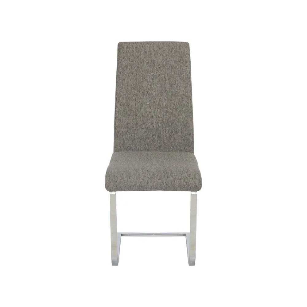 La silla para salón comedor Camila con asiento y respaldo acolchado y tapizado en tela color gris oscuro es una silla muy confortable. Combínala con la mesa de comedor que más te guste para completar tu salón. Patas metálicas en forma de U color cromo