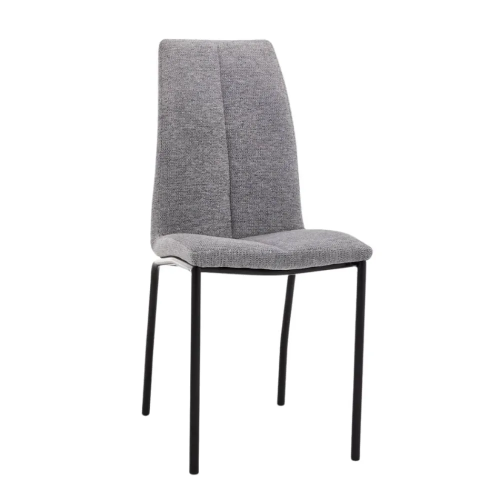 Inspirada en un estilo moderno y elegante, la destaca por su diseño minimalista y sofisticado. Las líneas limpias y el acabado en gris neutro permiten que se integre perfectamente en una variedad de decoraciones interiores, desde salones modernos hasta comedores elegantes. Las patas metálicas en acabado negro no solo añaden un toque de contraste visual, sino que también proporcionan una base sólida y estable, garantizando la durabilidad del asiento.