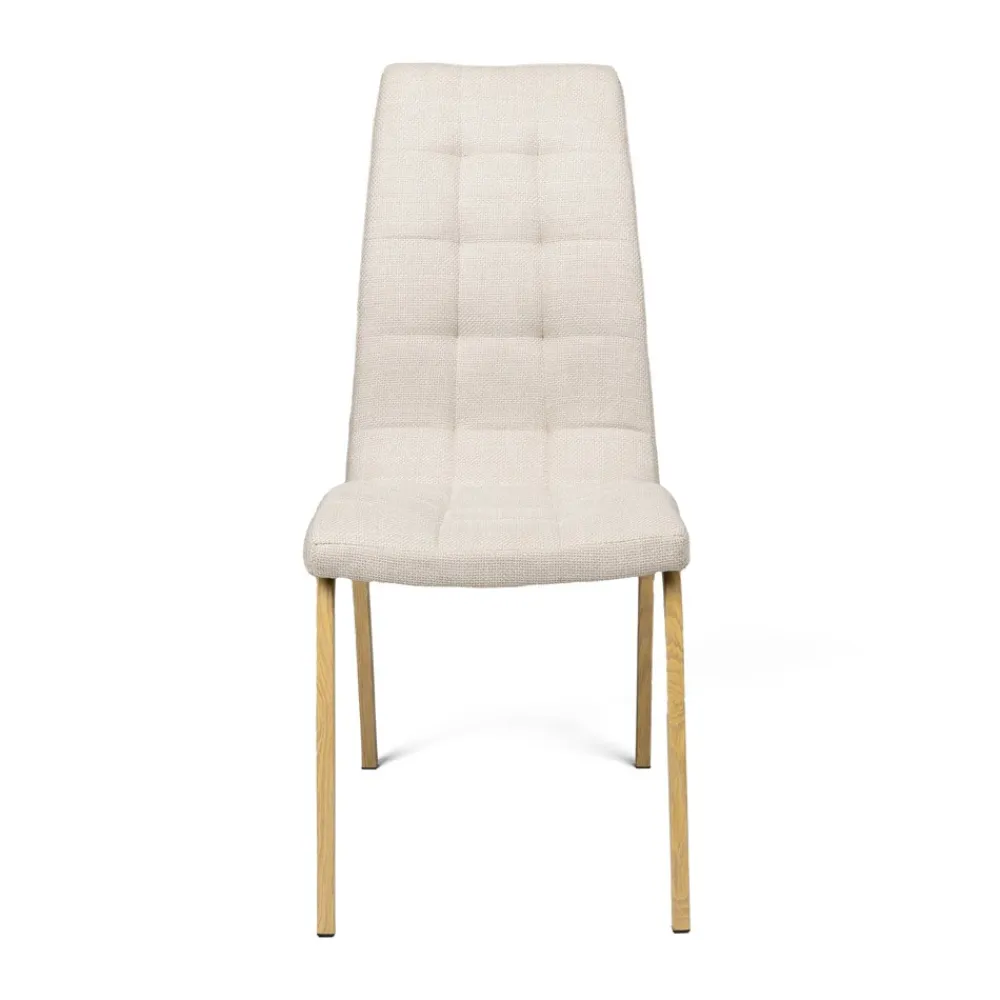Con unas patas metálicas que cuentan con un acabado en madera, la añade un toque cálido y sofisticado a cualquier comedor o sala de estar. Este contraste entre la textura suave del tapizado y el aspecto natural de las patas crea un equilibrio visual atractivo que la hace destacar en cualquier tipo de decoración. Es perfecta para ambientes contemporáneos, pero también se adapta a decoraciones más tradicionales que busquen un toque moderno.