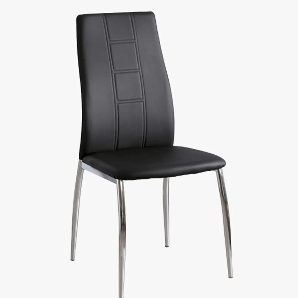 La silla de salón comedor Roxana se presenta en un bonito tapizado de símil piel en color negro, de diseño elegante, con la que podrás decorar tu salón de estar con garantía de éxito.