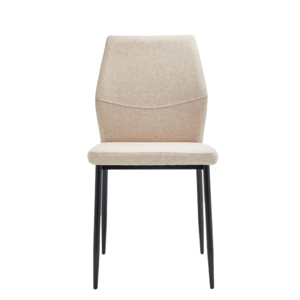 El confort y estilo se unen en esta silla de comedor tapizada en tela Easy Clean tipo lino color beige. El asiento y el respaldo están acolchados, lo que nos aporta una experiencia de sentada muy confortable, siendo unas sillas perfectas para largas sobremesas. Su respaldo es en forma hexagonal, con una costura decorativa en el frente, apostatando un toque de distinción y originalidad a la silla de comedor.