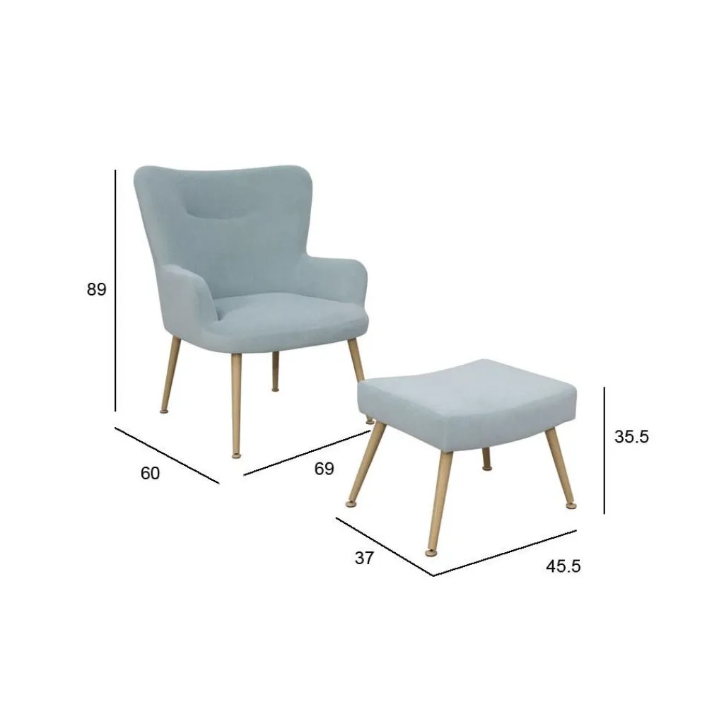 La Butaca Indo con Reposapiés es una pieza de mobiliario que destaca por su elegancia y funcionalidad, perfecta para añadir un toque de sofisticación y comodidad a cualquier espacio. Este conjunto está tapizado en tela Velvet color azul cielo, lo que le confiere una apariencia suave y lujosa, ideal para crear un ambiente acogedor y relajante en tu hogar.
