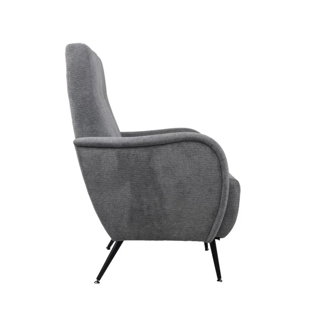 El estilo de la butaca Nubia combina elementos clásicos y modernos, evocando las tendencias de mediados del siglo XX con unas líneas limpias y materiales de alta calidad. Es perfecta para complementar una decoración contemporánea o minimalista, y su color gris y negro permite una fácil combinación con otros elementos decorativos.