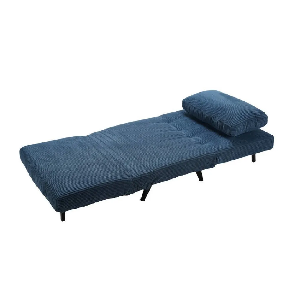 Este sillón cama es perfecto para aquellos que valoran la combinación de funcionalidad y diseño. Su color azul marino es fácil de combinar con diferentes estilos decorativos, desde modernos hasta más clásicos, y su estructura robusta garantiza durabilidad y resistencia a largo plazo. El relleno de espuma de alta densidad ofrece un soporte excelente, asegurando un descanso cómodo y reparador.