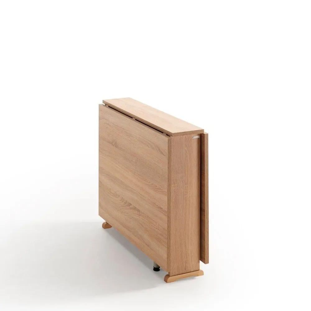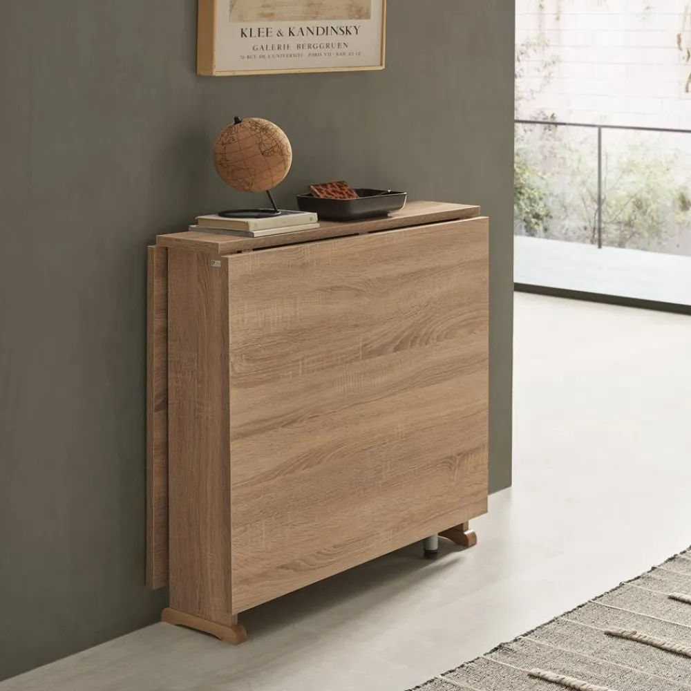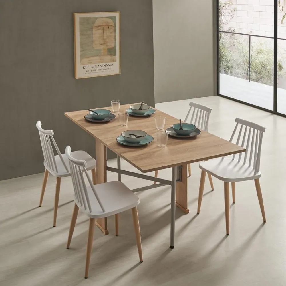 Resumiendo, la es una opción práctica para cualquier piso pequeño. Puedes usarla como mesa de cocina plegable con alas como apoyo para cocinar y comer, o como mesa de salón con alas para reuniones o para las comidas diarias. Sus medidas compactas, su fácil apertura automática y sus dos opciones de laminado la hacen adecuada para cualquier estilo de decoración.