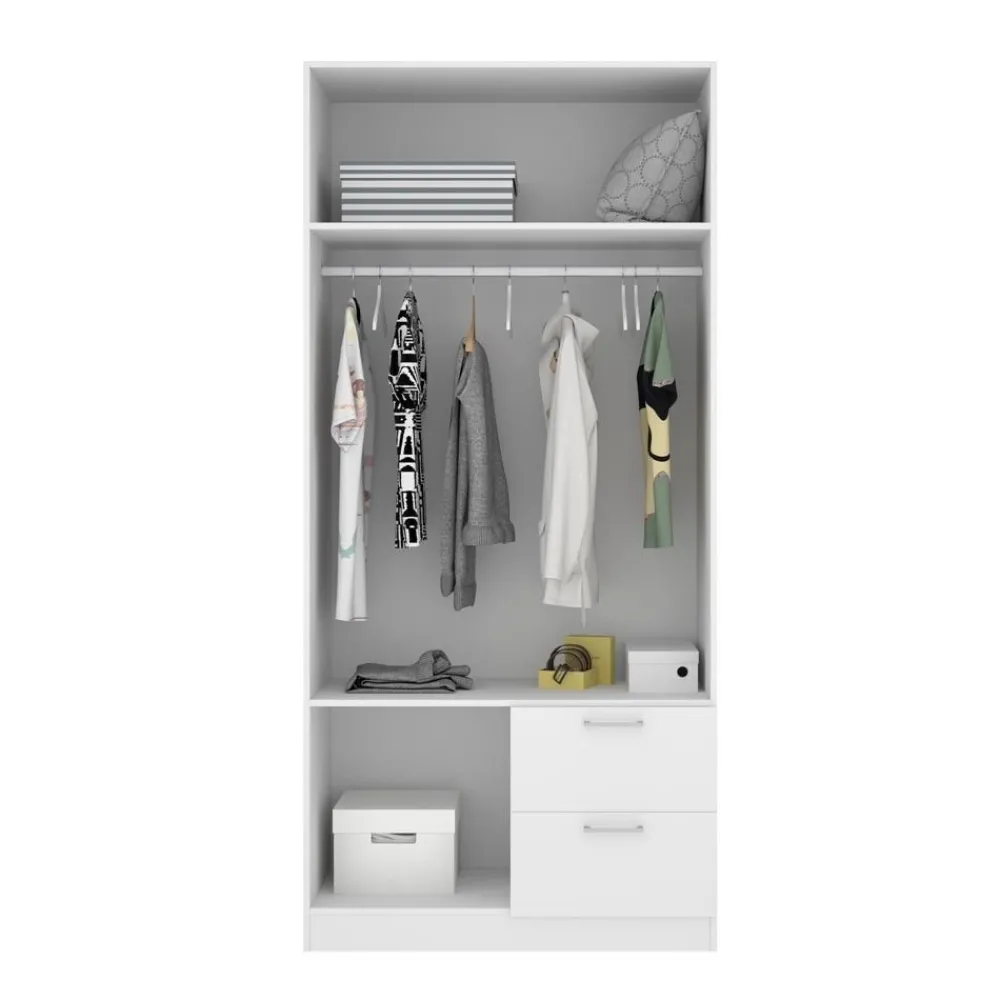 Armario de 2 puertas y 2 cajones de 100 cm de ancho en color blanco, ideal hasta para la habitación más pequeña, ofreciendo gran capacidad de almacenamiento y un diseño elegante.