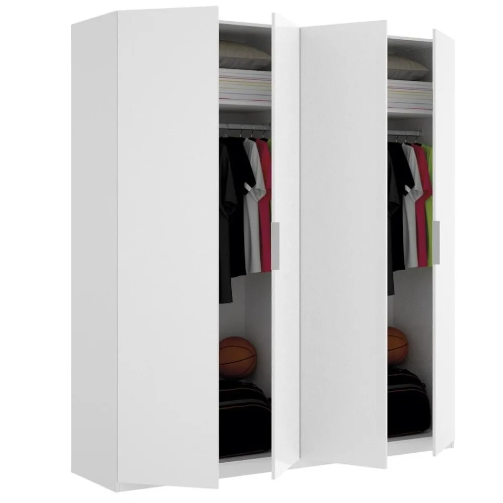 El perfecto complemento para cualquier dormitorio, así es el armario ropero Essen 4 puertas en color blanco, gran capacidad de almacenamiento de ropa en muy poco espacio. Un armario de 4 puertas a un precio muy económico.