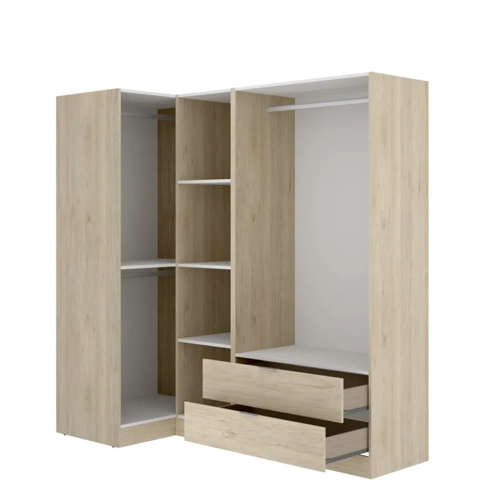 DEKIT Armarios Esquineros|Armarios Con Cajones^Armario De Rincón Essen 4 Puertas Y 2 Cajones Roble Natural 174 X 184 X 91 Cm