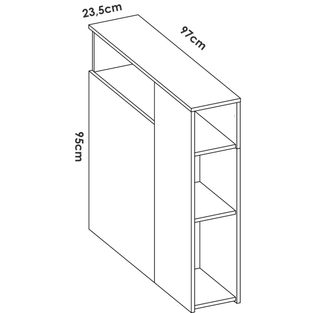 - Cabecero con mesita y estantería: 97 cm (ancho) x 95 cm (alto) x 23,5 cm (fondo).