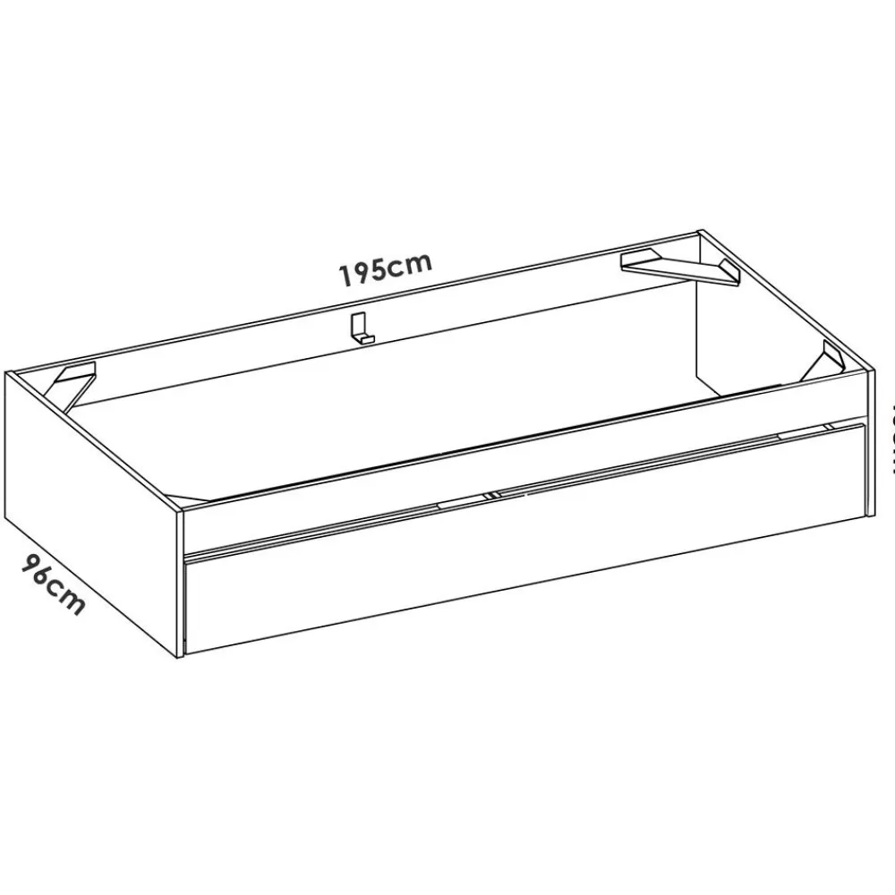 - Cama nido: 96 cm (ancho) x 40 cm (alto) x 195 cm (fondo)